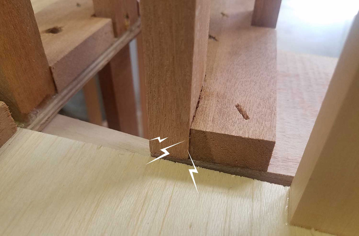 - 木の部品同士の接着が不十分で、これが原因で木材が擦れ合い、音が発生する。