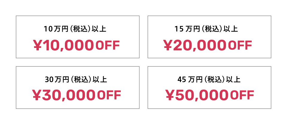 ご購入金額(税込)に応じて、最大5万円OFF!
