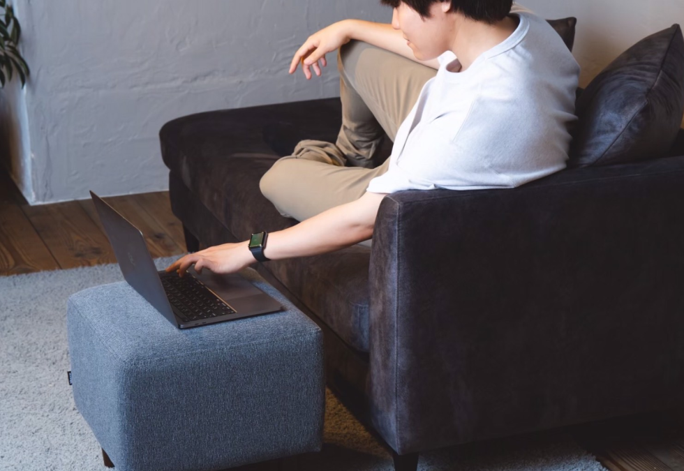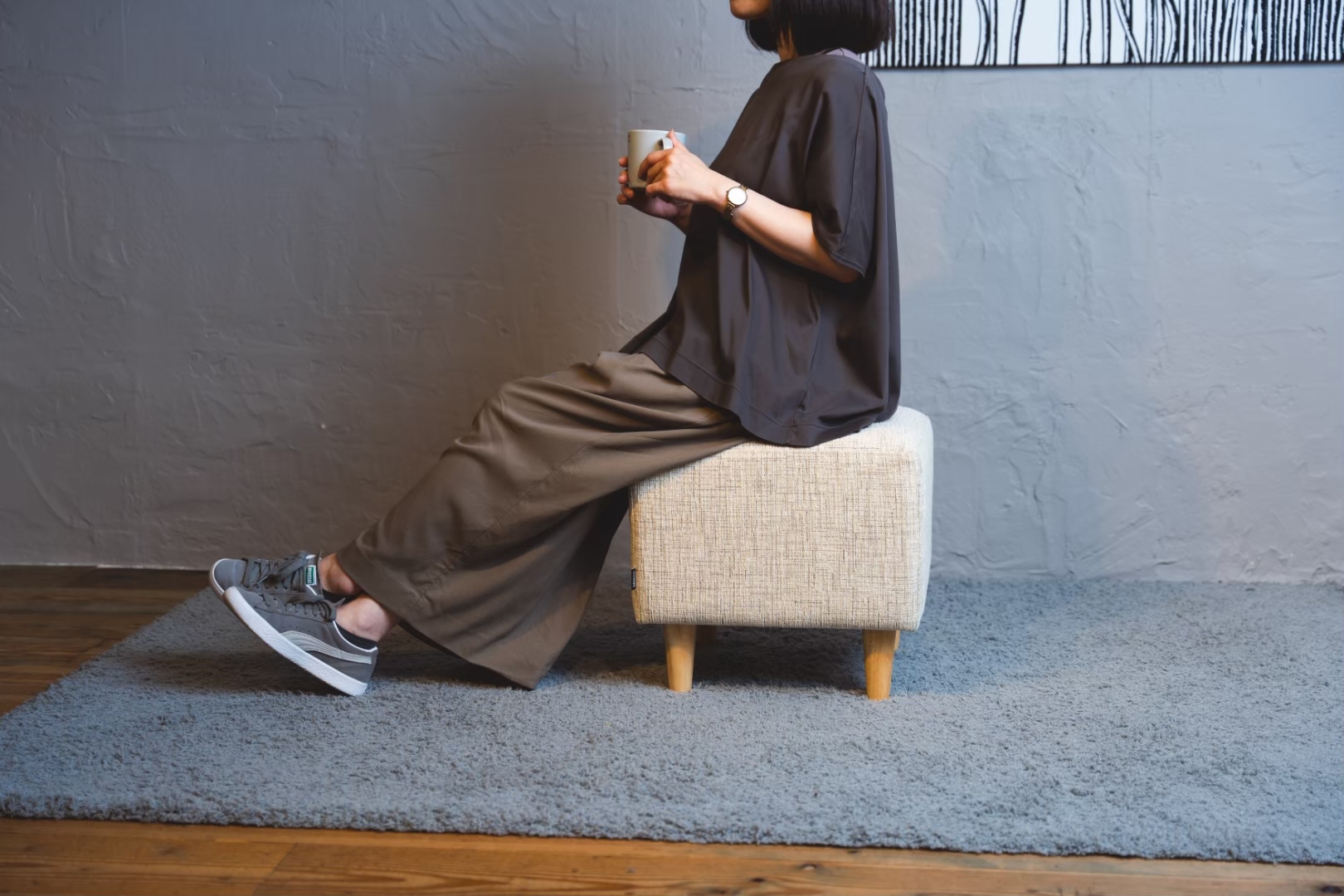 ソファと合わせて脚おきとしても、ちょっとしたテーブル代わりにも便利な小さめスツール。