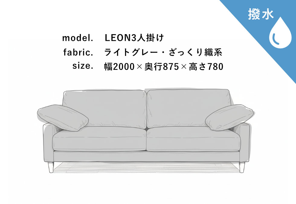 ※1 撥水機能‥防水とは異なり、長時間水分を放置すると染み込みが発生します。また、機能はご使用に伴い徐々に緩やかになります。お届けしたてのきれいな状態を保ちやすくするためのサポート機能としてご活用ください。