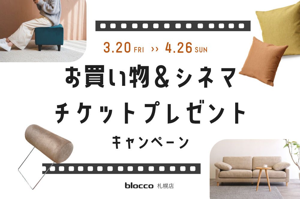 3月20日~4月26日の期間中、blocco札幌店のお買い物でシネマチケットプレゼント。