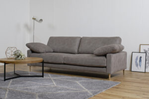 「LEON」は、座るスペースを最大限に広げるためにアーム幅を細くし、座面の高さの差を少なく設計しており、横になりやすく快適性に優れています。付属の肘クッションは枕の代わりとして使用できます。ソファでゆったりとした質の高いうたたねを楽しんでください。