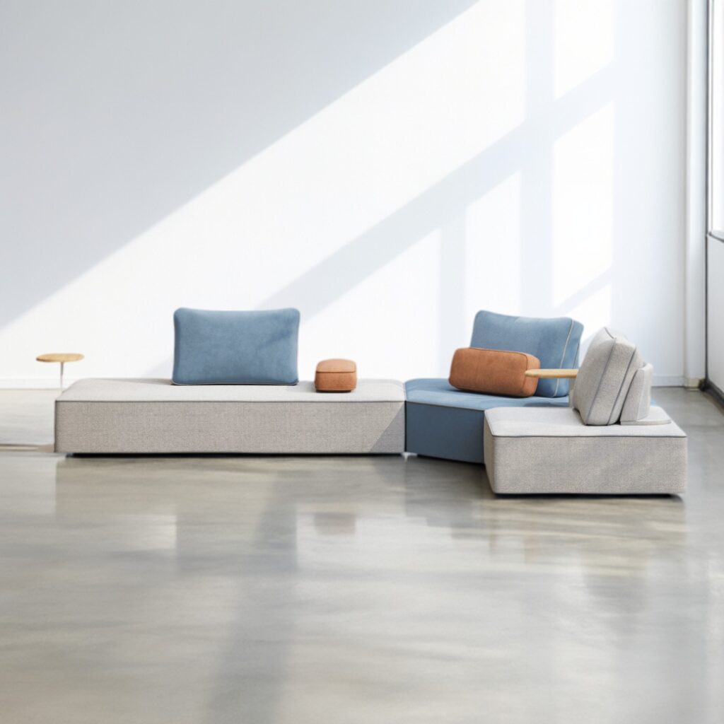 グッドデザイン賞受賞のモジュールソファ。多彩なシーンに極上のくつろぎを与えます。生地の張り分けによってオリジナリティ溢れる愛着のあるソファに仕上がります。